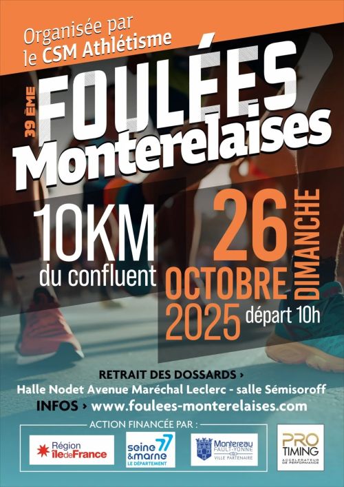 Les Foulées Monterelaises sont une course à pied accessible à tous, organisée à Montereau-Fault-Yonne, en bordure de la Seine-et-Marne, dans un cadre urbain animé par la confluence de l'Yonne et de la Seine. Rejoignez cet événement convivial pour une sortie sportive simple et revigorante, aux côtés de coureurs locaux, et découvrez le plaisir d'une activité collective en pleine nature proche de la ville.