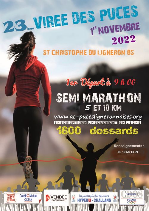 La Virée des Puces est une course nature organisée à Saint-Christophe-du-Ligneron, commune rurale de Vendée entourée de bocages et de chemins boisés. Parcours variés sur sentiers et routes secondaires. Venez courir et découvrir ce cadre tranquille. Inscriptions ouvertes.