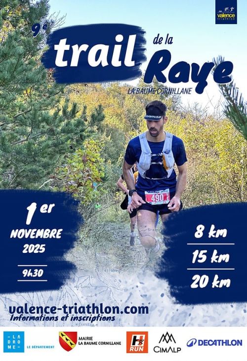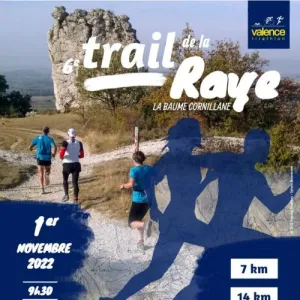 Le Trail de la Raye est une course nature organisée par le Valence Triathlon à La Baume-Cornillane, petit village de la Drôme provençale, niché au pied du Vercors et de la Raye. Trois parcours trail – 7 km, 14 km et 20 km – traversent sentiers et reliefs locaux.