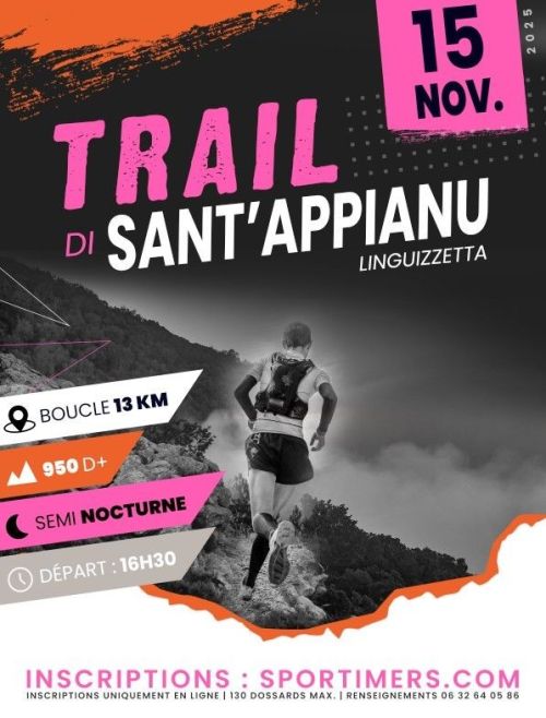 Course nature dont la particularité est de se terminer en nocturne. Avec un dénivelé positif de 950m elle vous fera découvrir les multiples paysages du mont Sant'appianu. Organisé avec l'AS Bravone et le soutien de la mairie.