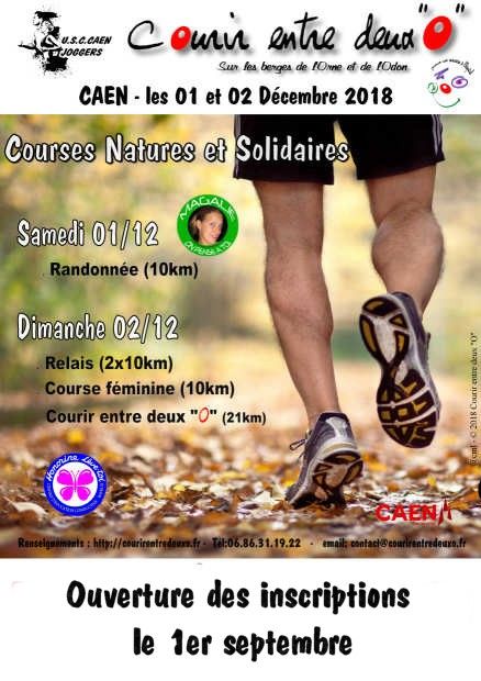Epreuve principale limitée à 1000 participants (chemins et sentiers parfois étroits le long des berges de l'Orne et de l'Odon. Communes de Caen-Bretteville sur Odon- Eterville et Louvigny Catégories autorisées JU->V5.