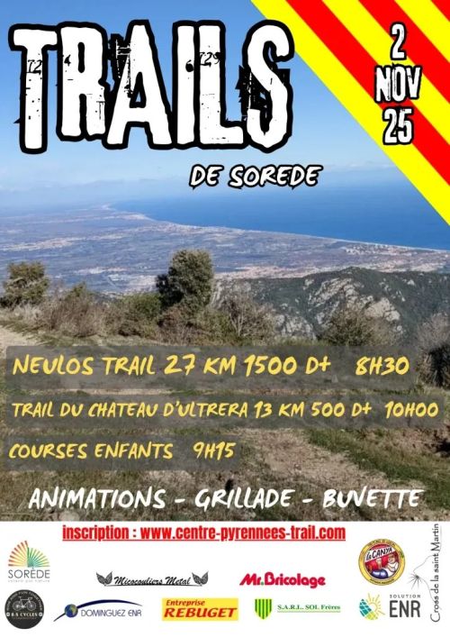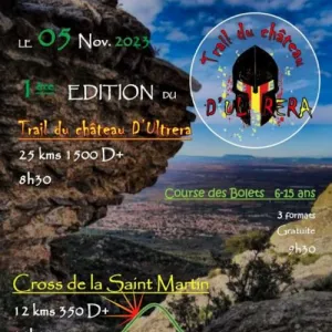 Le Trail du Château d'Ultrera est une course de trail de 13 km avec 500 m de dénivelé positif, qui se déroule à Sorède, un village catalan niché au pied du massif des Albères dans les Pyrénées-Orientales. Le parcours traverse des sentiers boisés et des collines douces, offrant des vues sur les pics environnants et la mer Méditerranée, en passant par des sites historiques comme l'ermitage Notre-Dame du Château d'Ultrera. Rejoignez cet événement pour profiter d'une sortie en nature accessible, dans une ambiance conviviale, et pour vous challenger sur un terrain varié et préservé.