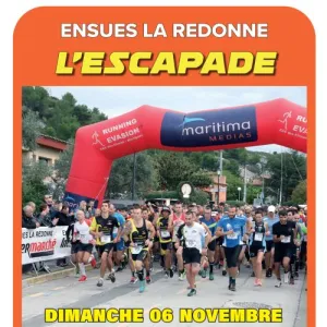 La course de l'Escapade (12,2 km) organisée par l'Escapade du Pied en collaboration avec la Municipalité. Comme l’an dernier, le départ et l’arrivée se feront depuis le parvis de l’Hôtel de Ville à 9h30. Course essentiellement dans la colline (pistes forestières). Panorama splendide sur la baie de Marseille !