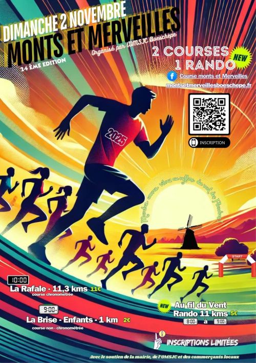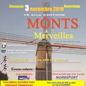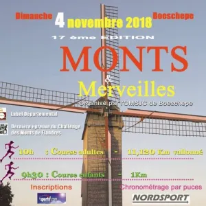 Découvrez ce charmant petit village qu'est Boeschepe, lors de la course Monts et Merveilles. Son parcours vallonné d'environ 11 kilomètres, emprunte les routes du mont de Boeschepe (129 m), effleurant le mont des Cats. Vous serez éblouis par ces panoramas, typiques du coeur des monts des Flandres.