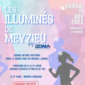 Les Illuminés de Meyzieu est une course nature nocturne qui se déroule dans le grand parc de Miribel-Jonage, au départ des Voiles du Grand Large à Meyzieu. Elle propose des parcours trail de 5, 14 et 24 km, ainsi que des marches nordiques et des courses pour enfants, le tout dans un cadre boisé et lacustre. Rejoignez cet événement pour profiter d'une sortie sportive accessible, en famille ou entre amis, et découvrir les sentiers du parc sous un éclairage festif.