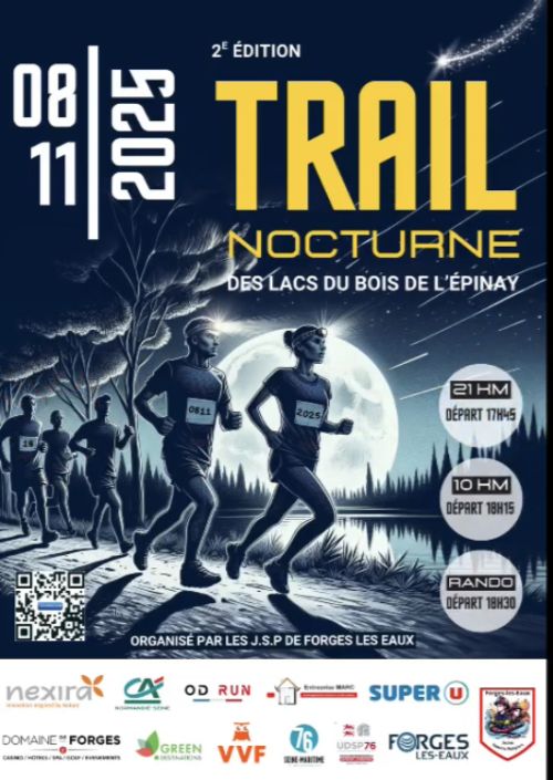 Seconde édition du Trail Nocturne des Lacs du Bois de l'Epinay avec au programme un 10km, un 21km et une rando 7km. Organisé par l’Associaition des Jeunes Sapeurs-Pompiers, après le succès de la première édition avec 900 participants, venez vivre l’expérience nocturne ! Courez ou randonnez à la lueur des frontales dans une ambiance chaleureuse avec les jeunes sapeurs-pompiers encourageants tous les participants à donner le meilleur de soi ! ✨