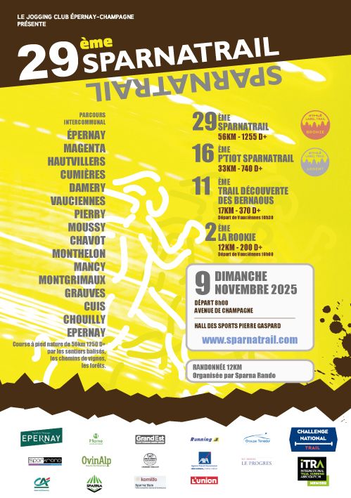 Le Sparnatrail est l’un des tous premiers trail créé au nord de la Loire en 1996, à l'époque où le phénomène trail n'existait pas encore. 4 épreuves et 2200 coureurs pour découvrir sous les couleurs de l’automne, les célèbres coteaux champenois dont ceux d’Hautvillers récemment classés au patrimoine mondiale de l’UNESCO .