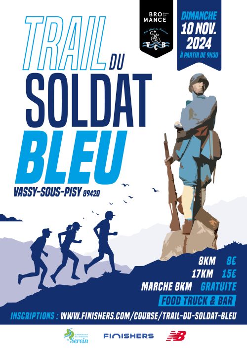 La première édition du Trail du Soldat Bleu aura lieu le 10 Novembre 2024. Les inscriptions sont ouvertures sur finishers.com, découvrez 2 formats de courses chronométrées (8KM et 17KM) ainsi qu'une marche (8KM). Vous avez l'envie de vous challenger ou simplement découvrir la course nature, venez découvrir les bois de Vassy-sous-Pisy (8KM et 17KM) et Bierry-les-Belles-Fontaines (17KM) sur des parcours joueurs et accessibles. Entre amis ou en famille, le village de Vassy-sous-Pisy vous accueillera toute la journée du dimanche 10 novembre avec son food truck, son bar et d'autres surprises...