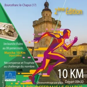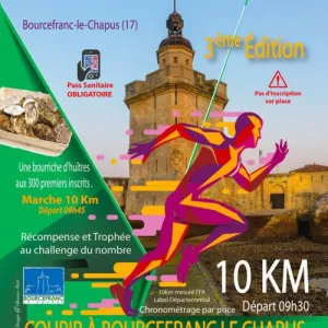 La course Courir à Bourcefranc-le-Chapus invite les coureurs à découvrir un parcours varié de 5 et 10 km, au cœur de ce village côtier de Charente-Maritime, entre dunes, forêts et vues sur l'océan Atlantique. Niché près du port ostréicole du Chapus, ce coin de Nouvelle-Aquitaine offre un cadre naturel accessible pour tous les niveaux. Rejoignez l'événement pour partager une ambiance conviviale, bouger en pleine nature et profiter d'un moment simple de bien-être avec d'autres participants.