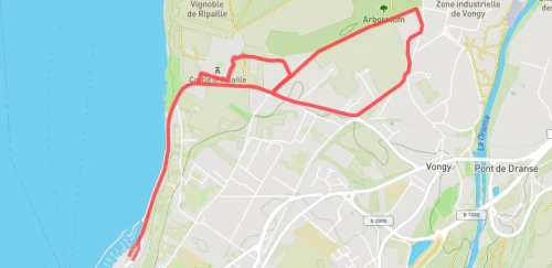 Course sur route, voie cyclable et chemin le long du château de Ripaille et des vignes.