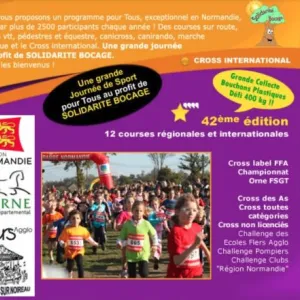 Le rendez vous Sport Loisir, du Sport Santé et du Sport Compétition. Evènement Festif au coeur de la Normandie suivi par 2500 participants ! Trail Nocturne, Course Nature, Randos VTT, Randos Pédestres, Canirando, Canicross, Marche Nordique et l’incontournable Cross International au programme de 2 journées au profit de plusieurs associations.