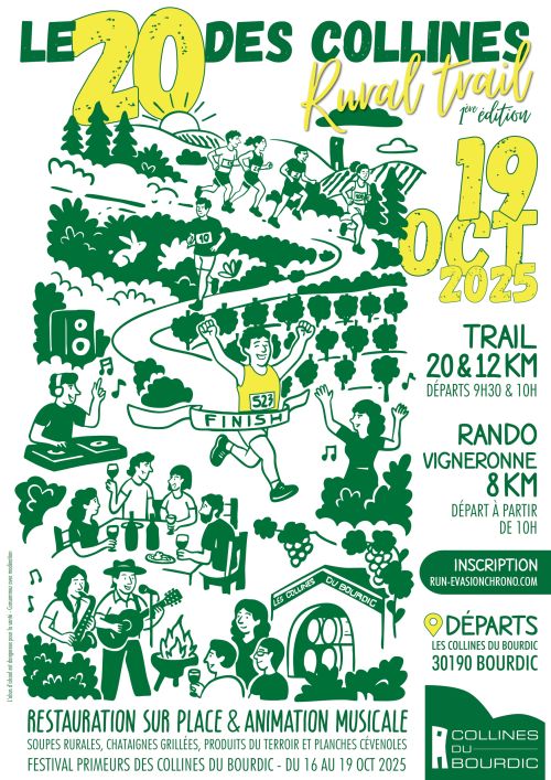 Quand on œuvre tous les jours pour la notoriété du VIN des Collines du Bourdic et que l’on est quelques fondus de courses à pied, il est facile d’imaginer le raccourci vers ‘’Le 20 des Collines’’.