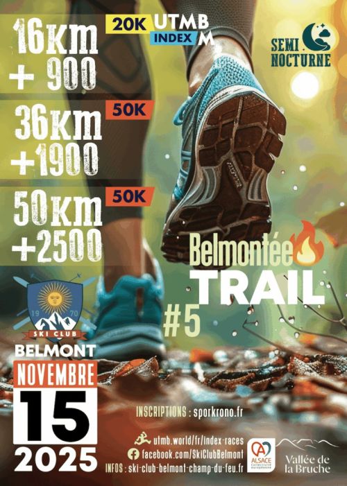 La Belmontée de Feu c'est 3 trails sur un terrain très technique et rigoureux, dans une période propice aux conditions météo difficiles (froid, neige, giboulées). Ces parcours s'adresse avant tout aux initiés et aux sportifs aguerris. Semi-nocturne, ce trail vous permettra de repousser vos limites et de découvrir de magnifiques sentiers.