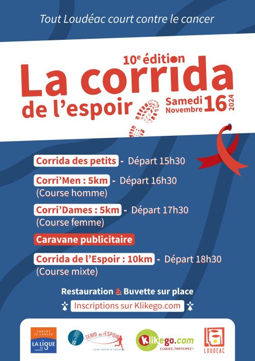Le Team de L'espoir organise la Corrida de L'Espoir. L'année marquera les 10ans de notre association.