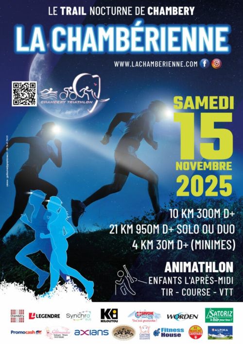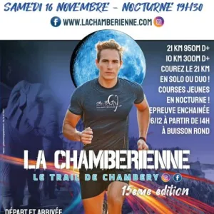 La Chambérienne est un trail nocturne qui se déroule à Chambéry, en Savoie, au cœur des Alpes. Les parcours démarrent par une boucle dans le centre historique de la ville, avant de s'élever vers les espaces naturels voisins de Barberaz, La Ravoire et Saint-Baldoph, offrant des vues sur les massifs environnants. Cette course conviviale, organisée par Chambéry Triathlon, propose des formats accessibles : 10 km avec 300 m de dénivelé positif, 21 km avec 950 m en solo ou duo, et une option pour les jeunes. Rejoignez cet événement pour partager une soirée de course simple et chaleureuse, entouré de supporters et de bénévoles, et découvrir les paysages locaux à votre rythme.
