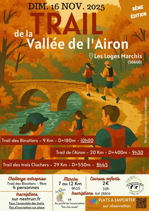 Trail de la Vallée de l'Airon, est un ensemble de course qui se fera sur une seule boucle tout au long de la Vallée de l'Airon. Vous emprunterez en majorité des chemins communaux, des bois et champs.