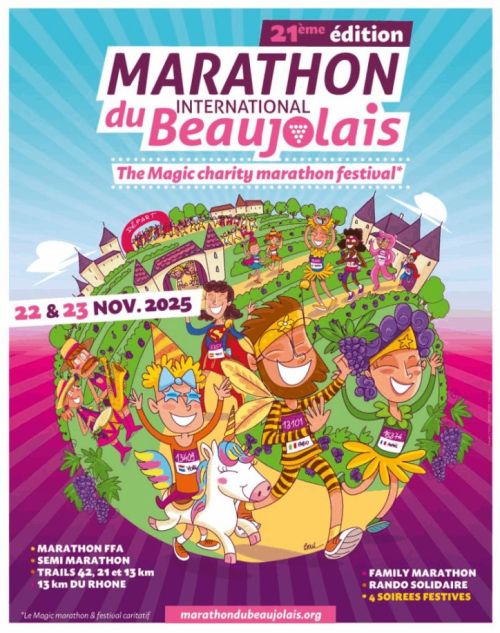 Découvrez nos courses : Marathon, Semi-marathon ou 13Km du Rhône et prenez le départ déguisé. Vivez une expérience unique avec des animations et dégustations tout au long des parcours ! Le Marathon International du Beaujolais à Villefranche-sur-Saône fait partie du TOP 5 des courses les plus festives de France. Chaque année l'événement réunit plusieurs milliers de coureurs venus célébrer l'arrivée du Beaujolais Nouveau dans une ambiance sportive et festive unique !
