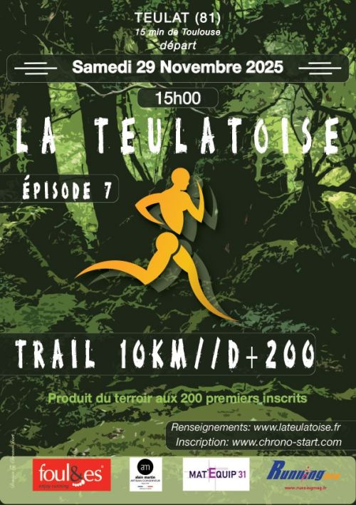 Petite course nature sans prétention, qui se déroulera sur la commune de Teulat à 15′ environ de Toulouse. Une course sera au programme. Un repas sera possible après l’effort et des produits du terroir, genre pâté ou terrine, seront offerts aux 300 premiers inscrits…