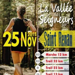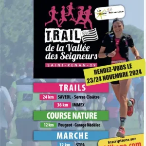 Le Trail de la Vallée des Seigneurs invite les coureurs à explorer les sentiers vallonnés et techniques de la campagne renanaise, au cœur de Saint-Renan en Finistère, Bretagne. Organisé par la Foulée Renanaise, cet événement propose des parcours de 12 km, 24 km et 42 km, adaptés à différents niveaux. Rejoignez les participants pour une immersion dans les paysages naturels de cette région côtière, et testez votre endurance sur des chemins variés. Inscrivez-vous pour partager l'effort et la convivialité d'une course accessible à tous.