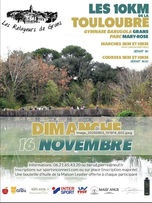 Rendez-vous à Grans dans les Bouches-du-Rhône pour une course nature au cœur des paysages provençaux ! Choisissez votre défi avec 2 tracés course (5 km et 10 km) ou profitez des parcours de marche de 5 km et 10 km pour une expérience plus douce.