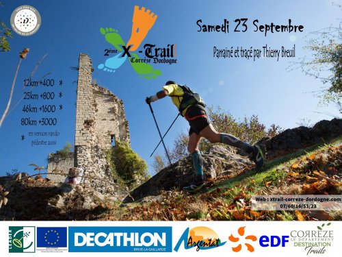 L'Ultra Trail du X-trail Corrèze c'est le gros morceau, la compétition la plus difficile par sa longueur : 80km. Le dénivelé est conséquent : 3 000m de D+. Départ de nuit à 5h d'Argentat. Pour les derniers, le retour se fera sous les ovations des concurrents des autres trails de la journée le soir vers 20h !