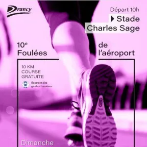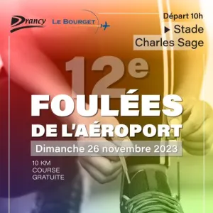 Les Foulées de l'aéroport organisée par les villes de Drancy et du Bourget en partenariat avec le club ABDO. Course hors stade de 10 kms labellisé FFA avec un parcours entièrement sécurisé. Ce rendez-vous sportif devenu incontournable propose un parcours de 10 km, sur Le Bourget et Drancy. Gratuite et ouverte à tous à partir de 16 ans, les Foulées de l’Aéroport accueillent chaque année des centaines de coureurs sans condition de niveau.