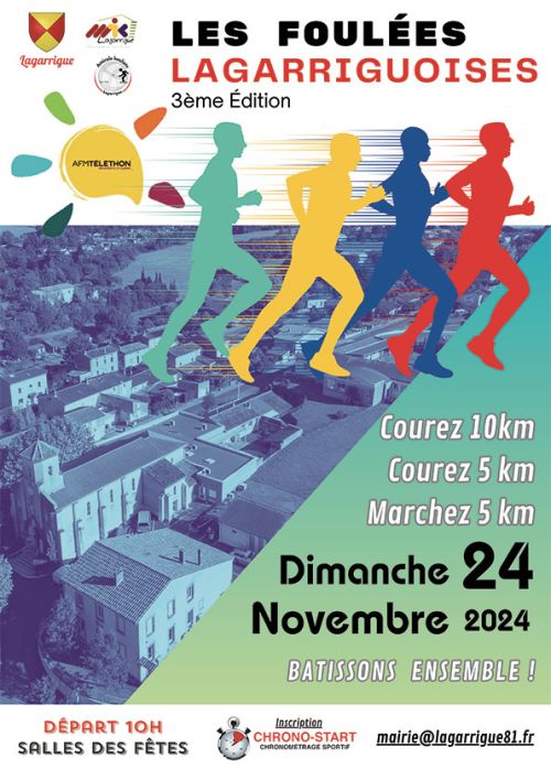 La MJC et la commune de lagarrlgue en action pour le Téléthon dans le cadre des Foulées Lagarriguoises reverseront l’intégralité des bénéfices de cette manifestation au profit de l’AFM Téléthon.