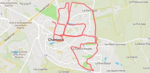 Le circuit conserve le passage par le champ aux vaches et le chemin de Cucé, avant la découverte les nouveaux quartiers de CHANTEPIE.