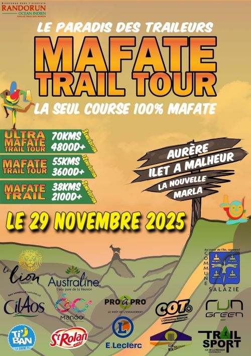Dans le prestigieux cirque de Mafate se déroulera la 6ème édition du Mafate Trail Tour. Défi sportif, aventure, découverte, le MTT vous plongera au cœur de l’île à grand spectacle classé patrimoine mondial de L’UNESCO. Le paradis des randonneurs devient aussi celui des coureurs de montagne ! Venez courir l’exceptionnel...