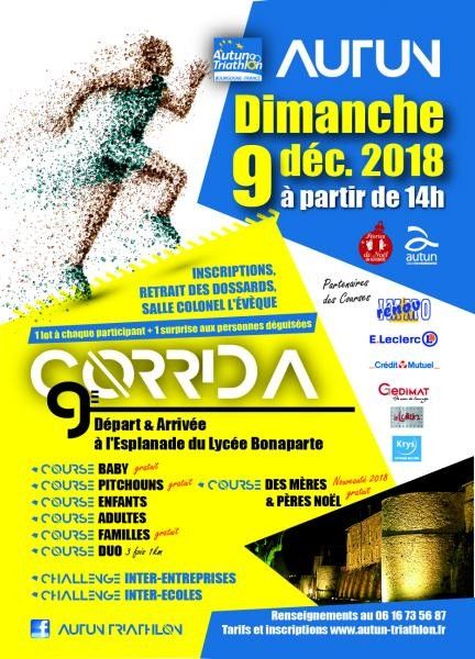 Venez nombreux nous rejoindre pour la 8ème corrida d'Autun. Accueil, retrait des dossards et inscriptions à partir de 15H30 Salle du colonel Leveque.