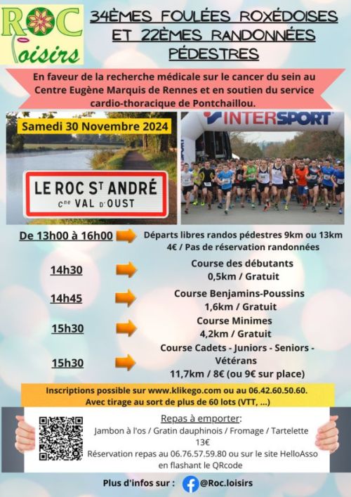 Foulées du ROC SAINT ANDRE (11,7 KM) et Randonnées pédestres organisées par l'Association "ROC-LOISIRS" en faveur de 2 causes humanitaires