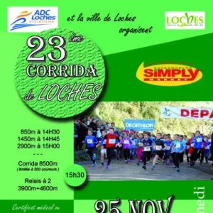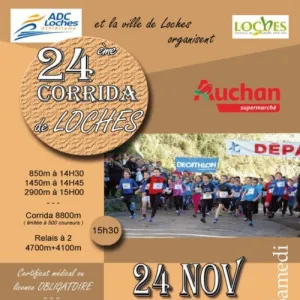 La Corrida de Loches est une course à pied de 7,1 km qui traverse les rues et le centre historique de Loches, une ville située en Indre-et-Loire, au cœur de la vallée de la Loire. Organisée par l'Association des Coureurs de Loches, elle offre un parcours accessible, avec quelques pavés à franchir. Rejoignez cet événement convivial pour allier effort physique et découverte du patrimoine local, en famille ou entre amis.