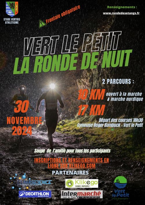 La Ronde de Nuit sur un parcours empruntant les chemins autour du village et des étangs de Vert le Petit.