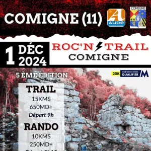 Le Roc'N Trail est une course de trail et de randonnée qui se déroule à Comigne, un petit village de l'Aude niché au pied de la montagne d'Alaric, au cœur du massif des Corbières. Ce territoire offre des sentiers variés traversant garrigue et vignobles, dans un cadre naturel préservé.