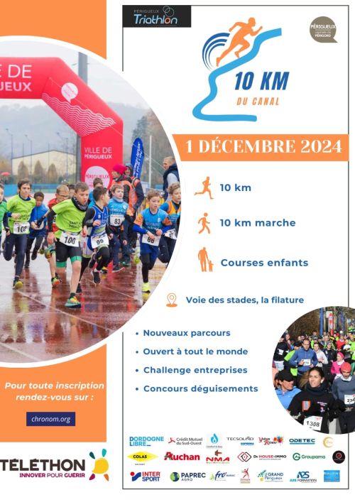 Course pédestre populaire de 10km organisée par le CA PERIGUEUX Triathlon chaque 1er week-end du mois de décembre sur la ville de Perigueux. Manifestation sportive partenaire du TELETHON. 2 courses enfants, une épreuve de marche et une ballade familiale sont aussi ouvertes à tous. Différents challenges sont proposés récompensant les 3 meilleurs clubs FFA, Administrations, Entreprises, associations, déguisements, ainsi qu'un challenge du nombre.