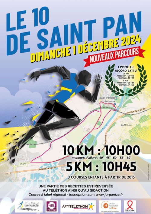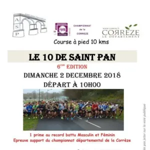 Le 10 de Saint Pan est qualificatif pour les championnats de France des 10 kms. La course se déroulera sur le même parcours que les éditions précédentes plat et sans difficulté. Elle est ouverte à tous quelque soit votre niveau de pratique Le départ se fera un peu avant le pont qui enjambe la Vézère à l'entrée de Saint-Pantaléon et l'arrivée près de l'espace vézère Causse au centre du bourg.