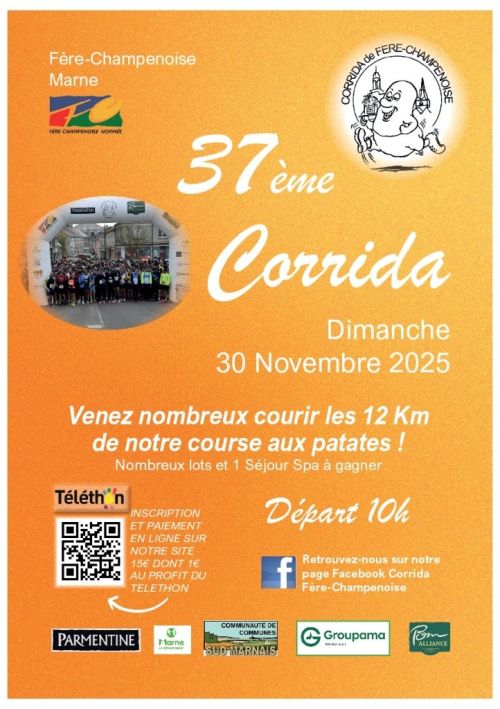 La Corrida de Fère-Champenoise est une course à pied de 12 km qui traverse les rues de cette commune champenoise, située dans la Marne au cœur de la région Grand Est. Connue localement sous le nom de « Course aux patates », elle réunit chaque année plusieurs centaines de participants dans une ambiance conviviale. Rejoignez cet événement pour allier effort physique et découverte du patrimoine local.