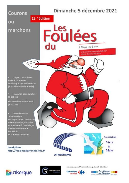 Les Foulées du Père Noël reviennent à Dunkerque le 7 décembre 2025. Le départ et l’arrivée sont prévus sur le front de mer de Malo-les-Bains, avec un parcours plat le long de la plage et de la digue. Deux distances sont proposées : 5 km et 10 km, ouvertes à tous les niveaux, en course ou en marche. Venez courir ou marcher déguisé en Père Noël, bonnet rouge fourni à chaque participant, pour une matinée conviviale et solidaire au profit d’associations locales. Une bonne occasion de bouger en famille ou entre amis avant les fêtes. Inscriptions ouvertes.