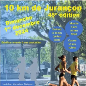 10 km de Jurançon avec une course et une marche chronométrées de 10km, marche 5km, course enfants (0.8km).