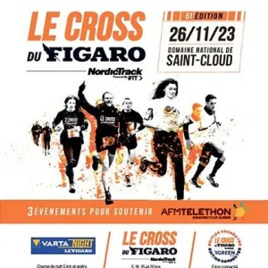 Le Cross du Figaro s’engage pour soutenir le Téléthon. Par ailleurs, le Cross du Figaro est fier d’être l’événement inaugural du Téléthon. Grâce à l’énergie de tous les runners, le Cross du Figaro donnera le départ de cette semaine de mobilisation populaire exceptionnelle à travers plus de 20 000 animations. Les bénéfices de la vente des t-shirts et une partie du montant des inscriptions au Cross du Figaro sera reversée au Téléthon. Un parcours nature de 5, 10, 15 ou 20 KM au choix le Dimanche 30 Novembre et une course Nocturne à la frontale le Vendredi 28 Novembre (5 ou 10 KM).