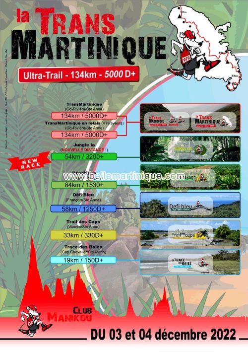 La TRANSMARTINIQUE est une longue randonnée sportive, en une seule étape, à allure libre dans un temps limité et en semi autosuffisance. La TRANSMARTINIQUE traverse la Martinique du nord au sud. Le parcours est constitué principalement de chemins, sentiers et d’itinéraires de randonnée, de pistes à travers les plantations agricoles : banane, cannes à sucre, ananas et de petites routes de campagne.