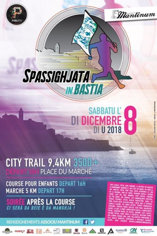 Bastia ouvre le bal des City Trail de Noël avec une course nocturne de 9,4 km avec 350 m de D+ au départ de la place du Marché à 18H00. La course est victime de son succès et affiche complet mais restez attentif la vente va bientôt ré-ouvrir pour quelques places…