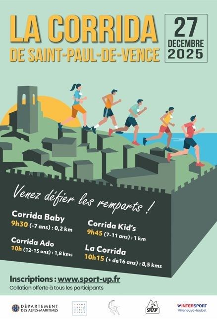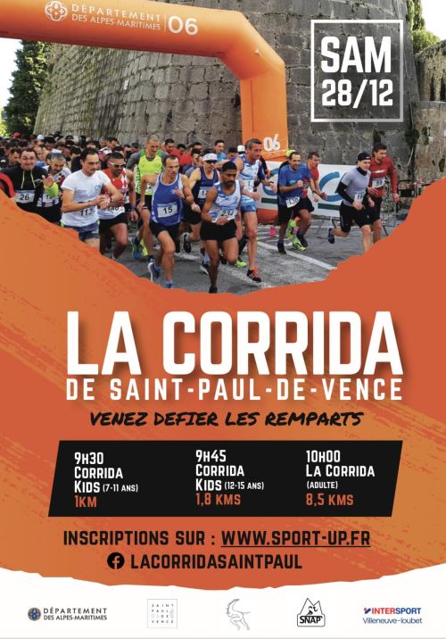 La Corrida de Saint Paul, épreuve pédestre de 8km, est organisée le 31 décembre par Sport Nature Activité Promotion (SNAP) avec le concours du Conseil Général des Alpes Maritimes et la commune de Saint Paul de Vence.
