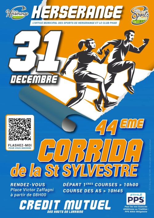 La Corrida de la Saint-Sylvestre est une course à pied traditionnelle organisée à Herserange, commune de Meurthe-et-Moselle située près de Longwy et des frontières belge et luxembourgeoise, dans la région Grand Est. Ouverte à tous les niveaux avec des distances adaptées, elle offre une ambiance conviviale pour terminer l'année par une activité sportive. Venez participer et partager ce moment de dépassement de soi avec d'autres coureurs.