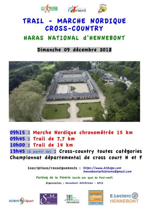 Trois épreuves dont 2 trails et une marche nordique chronométrée sont organisées par Hennebont Athlétisme au départ du Haras national d'Hennebont, un des joyaux du patrimoine hennebontais construit sur ordre de Napoléon III, avec son musée vivant du cheval, ses écuries, son parc arboré, et beaucoup plus anciens comme l'Abbaye de la Joie et la Maison des Confesseurs.