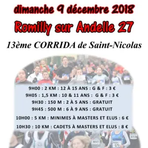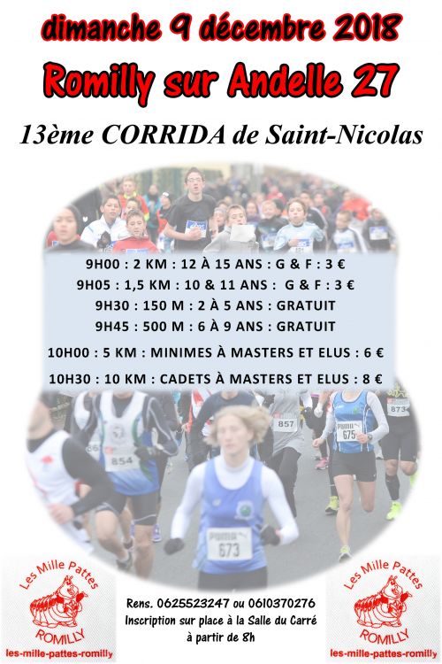 5 km Spécial Elus, 2 km (Benj à Min), 100 m (Ea & P) 5 & 10 km (Min à Vet) H & F, coupe aux 3 premiers de chaque catégorie, récompense à tous à l'arrivée, nombreux gros lots par tirage au sort. parking douche Catégories autorisées CA->V5.