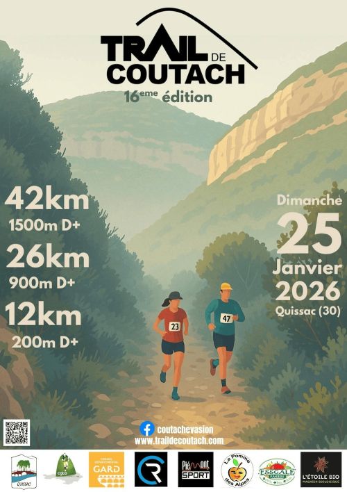 Trail de Coutach. Cette année, c'est au tour de la ville de Quissac d'accueillir cette 1ère course du Challenge Gardois des Trails. Cette manifestation désormais bien ancrée dans le calendrier des Trailers devrait connaître cette année encore l'intérêt d'un plus grand nombre. Alternant chemins forestiers et de monotraces plus techniques, vous pourrez admirer des paysages magnifiques avec des vues imprenables à travers le massif de Coutach.