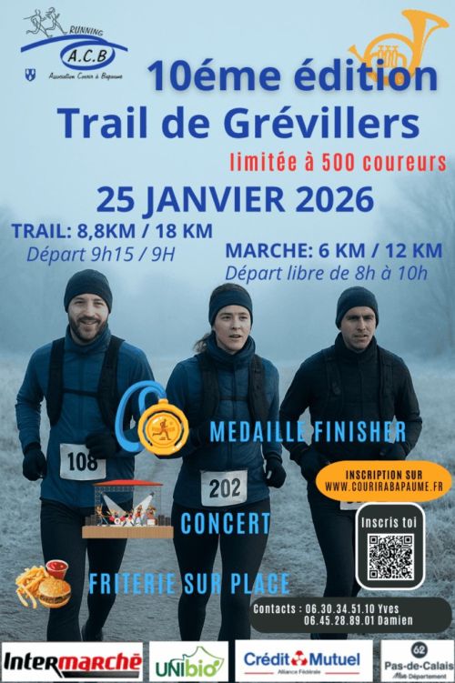 Le Trail de Grévillers (affilié au CDCHS 62) organisé par l’association COURIR à BAPAUME et avec le support de la Commune de Grévillers, ainsi que des communes de Warlencourt Eaucourt, Pys, Irles et de nombreux bénévoles. Le Trail de Grévillers regroupe 4 épreuves.