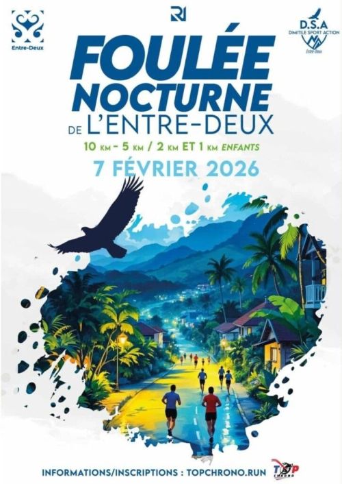 La Foulée Nocturne de l'Entre-Deux est une course sur route qui se déroule dans le village de l'Entre-Deux, à La Réunion. Le parcours emprunte les rues du centre-ville, en direction de Bras Long et Grand Fond Intérieur, sur un circuit en boucle accessible aux coureurs de différents niveaux. Organisée en soirée, elle propose un cadre convivial au cœur d'un village de montagne préservé. C'est une occasion de courir dans une ambiance nocturne particulière et de participer à un événement local ouvert au plus grand nombre. Si vous aimez la course à pied, venez rejoindre les participants pour cette édition.