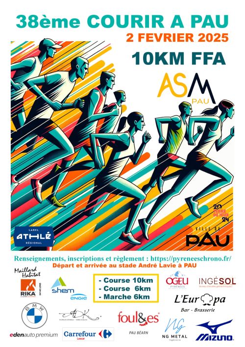 Courir à Pau organisé par le club de Course à Pied de l’ASM de Pau. Et cette année encore il sera FFA (qualificatif pour les championnats de France). Il y aura également une Marche de 6km chronométrée.